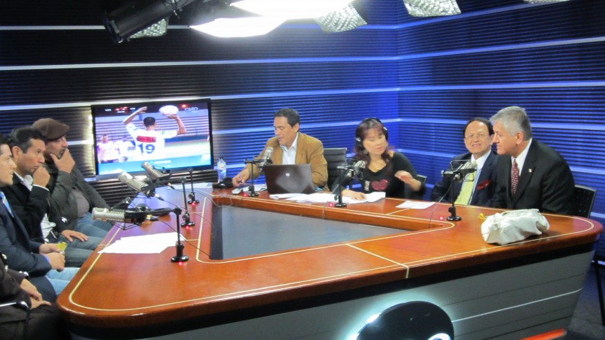 OWU’s Patricio Plazolles participates in a national radio program discussion during his recent trip to Peru, where he was honored with the 2011 Peruvian Pride Award. (Photo courtesy of Patricio Plazolles)