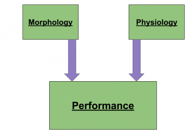 Morphology is a branch of biology that studies the form and structure of living things. Morphology directly relates to performance because the structure of an organism's body determines how effectively an organism moves and carries out tasks in its environment.