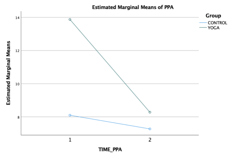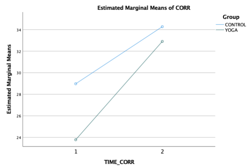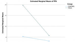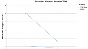 Both groups conducted a baseline test of relevant measures one week before the intervention began. For the experimental intervention week, the group was exposed to the yoga treatment on two occasions, one time as a practice session, where no measures were collected. Again, a second time, where the relevant measures were recorded post-yoga. The control group was not exposed to yoga and the relevant measures were recorded at the end of the week. The control and experimental group were exactly the same in every regard, except the control group will not receive the yoga intervention.
