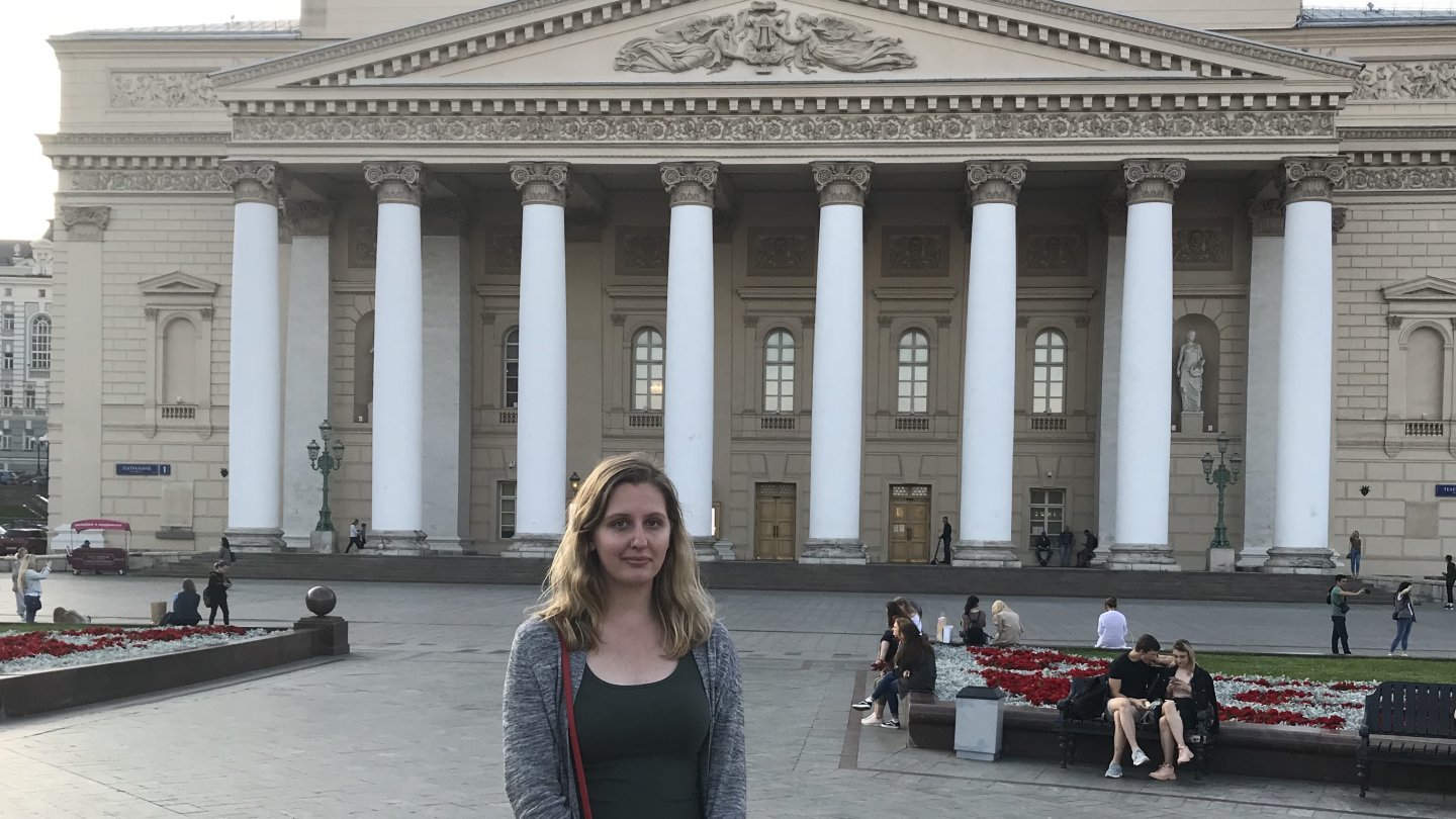 Me standing in front of the famed Bolshoi Theater in Moscow.