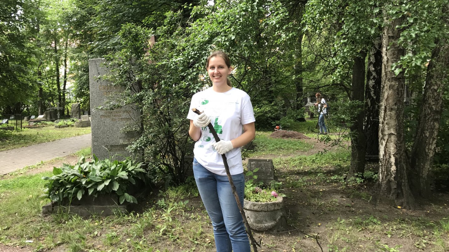 Cleaning up the historic graveyard at Alexander Nevsky Lavra Monastery.