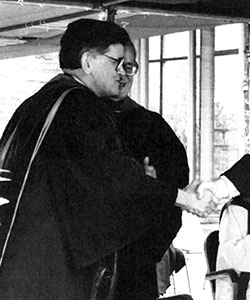 By no means has Dr. Leathers’ service to Ohio Wesleyan been confined to the classroom. He has labored faithfully on some of the most demanding faculty committees, and had been a continuous member of the Women’s Studies Committee since 1981. His diligent, thoughtful attention to book purchasing has been instrumental in maintaining and strengthening Beeghly Library’s collections in his several fields of interest. Unbeknownst to all but a few, he has for years privately supplemented the English Department’s book budget with a generous annual gift.