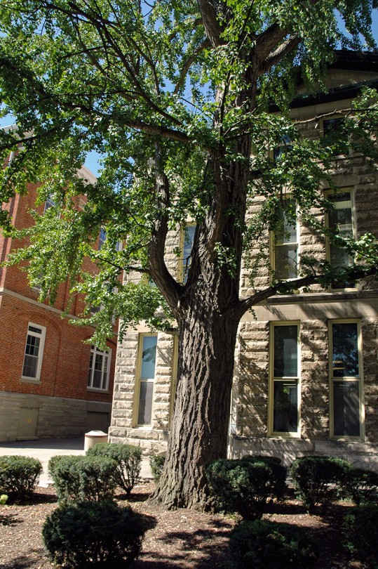 This Ginkgo tree, an ancient species from China, is located behind Slocum Hall, OWU’s original library. In the early 1960s, Ohio Wesleyan chose to spare the Ginkgo tree and built Beeghly Library to provide more library space.