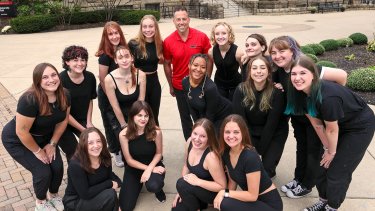 Matt meets with students performing in OWU's Orchesis dance concert.