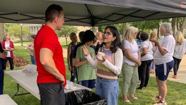 Melissa and Matt vandenBerg host a dinner for resident assistants at the Pritchard House.