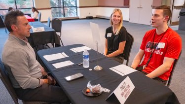 Matt vandenBerg speaks with local media prior to announcing three new collaborations with Columbus State Community College.
