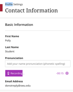 Deadline: Submit your name pronunciation by Friday, April 17, 2026. If you miss the deadline, contact the Registrar's Office at registrar@owu.edu or 740-368-3200 for assistance.