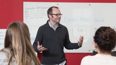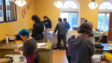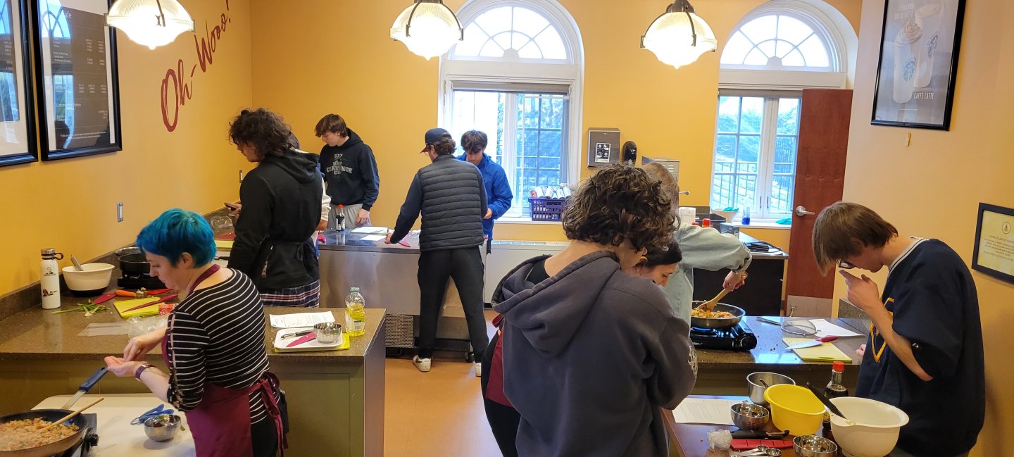Students work together to make a healthy meal at one of Dr. Nix's food labs.