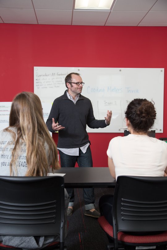 Nutrition students help teach "Cooking Matters" classes to help fight hunger in Delaware County. The adult classes focus on grocery shopping, food budgeting, and nutrition.