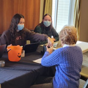 OWU students use a Carotenoid scanner to measure antioxidants in Willowbrook residents.