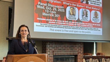 The department's student board organizes annual socials, assists in programming, offers advice on departmental policies, conducts faculty evaluations, and aids in candidate search and selection when necessary. An election is held each spring to elect both seniors and underclassmen to the board. Pictured here are members of the 2024-2025 Student Board (from left to right): Joey Egleston, Grace Zoldak, and Dana Kolesar (not pictured: Lilly Colbeck, Mary James, Chevy Kosek, Gen Maddox). In 2024-2025, the student board planned had socials including a high tea, a vintage Valentine making event, and a regency couture crafting event. The 2025-2026 History Student Board members are Lilly Colbeck, Jenna Ashbrook, Jenna Harmon, Amanda Matias Gonzalez, and Eli McNemar.