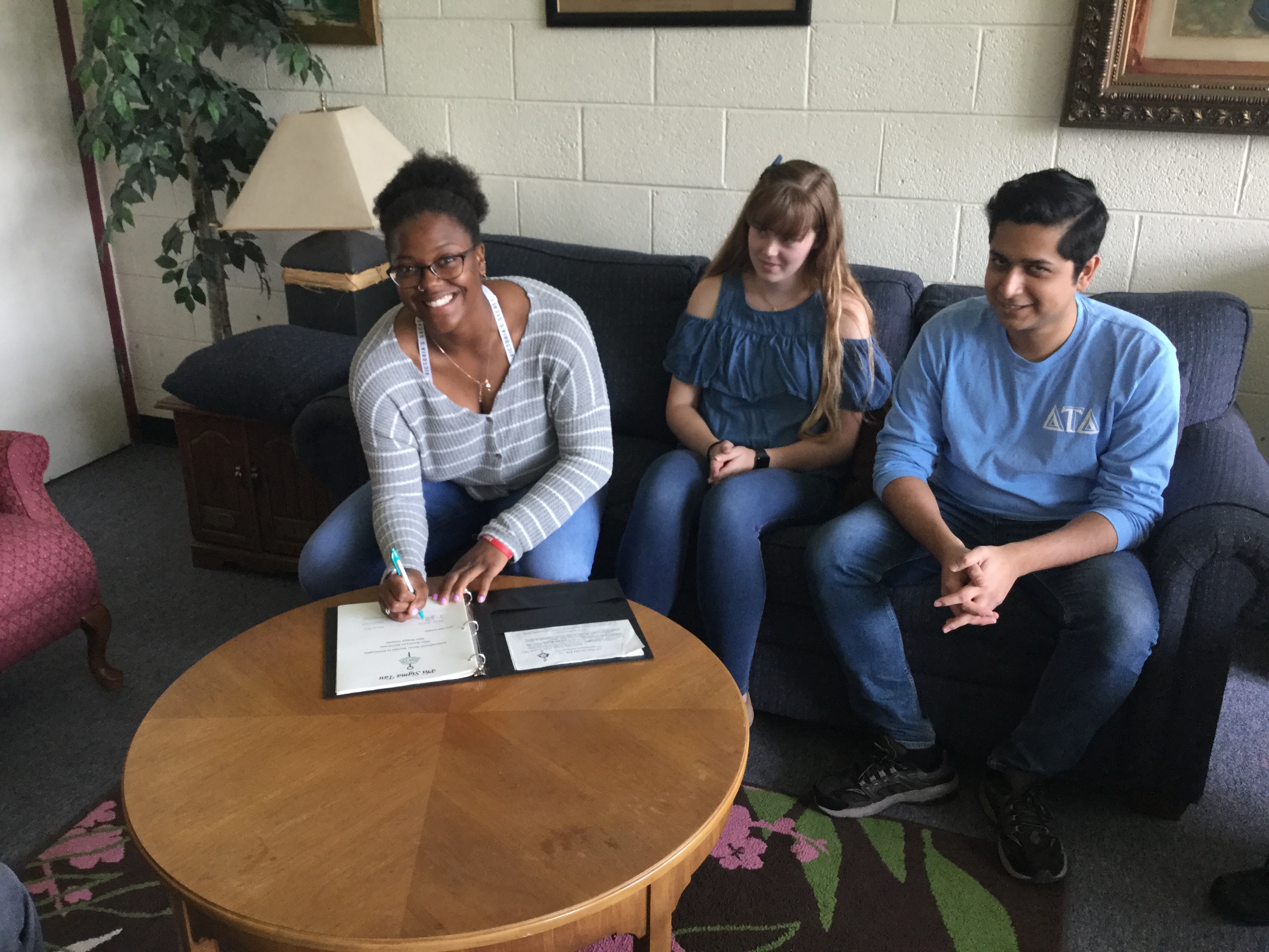 Malaun Huff, Kalie Flack, and Ahmed Wiqar were inducted into Phi Sigma Tau