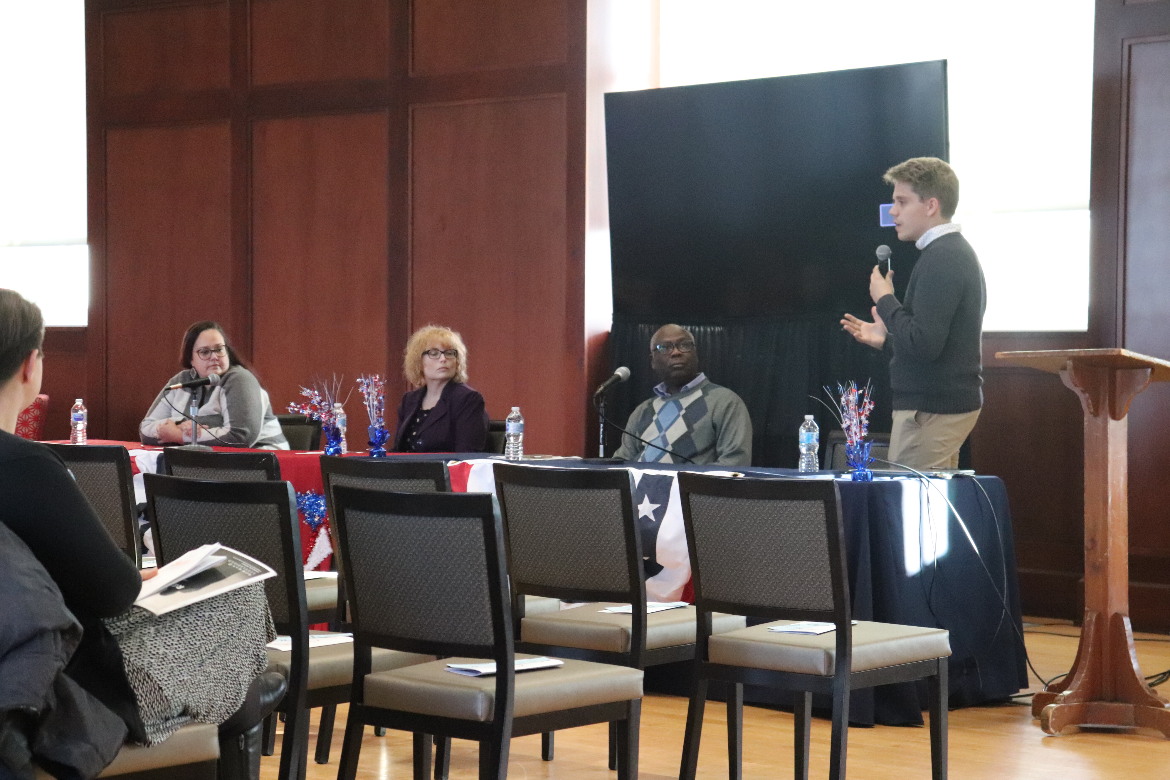 Hearing panelists included faculty members Ellen Arnold (history), John Krygier (environmental studies) and Nathan Rowley (Geology and Geography) discussing Climate; Robert Gitter (economics) and Phokeng Dailey (communication) discussing Immigration; and Randolph Quaye (Black World Studies), Franchesca Nestor (politics and government) and Dawn Chisebe (Black World Studies) discussing Healthcare.
