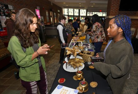 Ohio Wesleyan student Kennedy Watkins (right) runs her own business, Gilded Teas. All OWU student entrepreneurs have access to the Latham Bishop Ventures program to help them succeed in their ventures. (Photo by Paul Vernon)