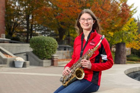 “OWU’s band taught me how to adapt to quickly changing conditions and how to work as part of a team. I feel significantly more confident in my leadership abilities. We welcome all majors from music education to zoology, so it’s really interesting to see people from all different walks of life being able to perform together!”