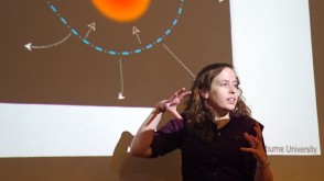 After graduating in 2008 with a degree in astrophysics and mathematics, Rachael Roettenbacher eared a Ph.D. in astronomy and astrophysics at the University of Michigan. She returned to speak at OWU about her research on starspots, which was published in the renowned scientific journal Nature.