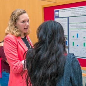 Each September, students who participated in the Summer Scholarship and Research Program display and discuss their work.