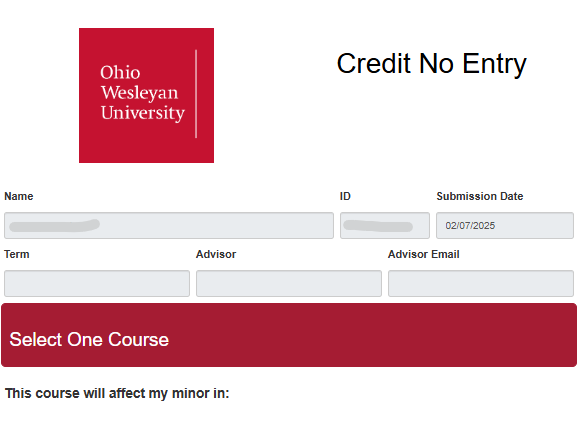 This form is for students currently enrolled at Ohio Wesleyan University who wish to request pre-approval to transfer courses from another institution back to OWU. Submit this form prior to enrolling in courses at another institution. Create a free account on Transferology to view approved transfer credit equivalencies. (See https://owu.edu/transferinfo and How Do I Use Transferology? for details.)