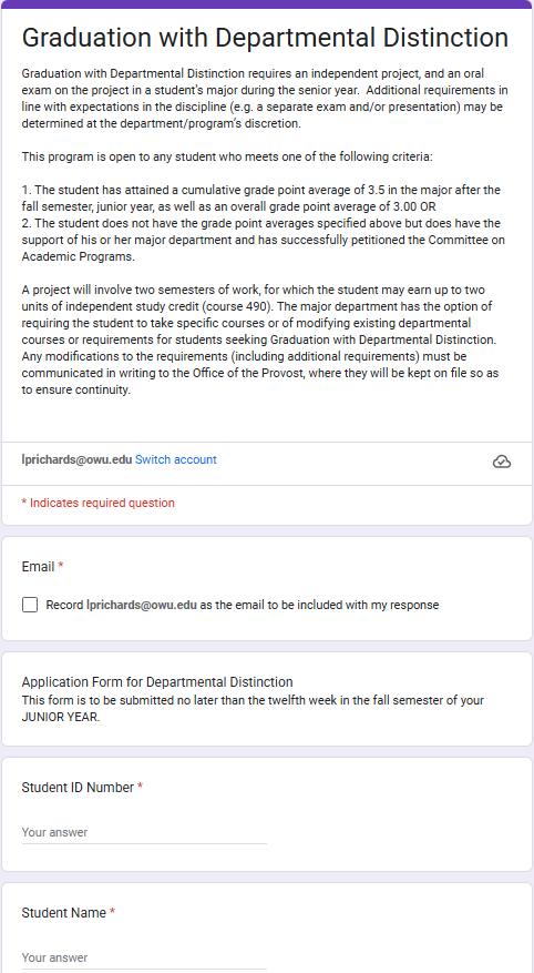 - Graduate with Departmental Distinction Application (online form) [preview]