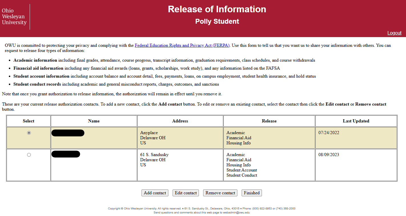 - FERPA Information Release (Self-Service online form - login required) [preview]