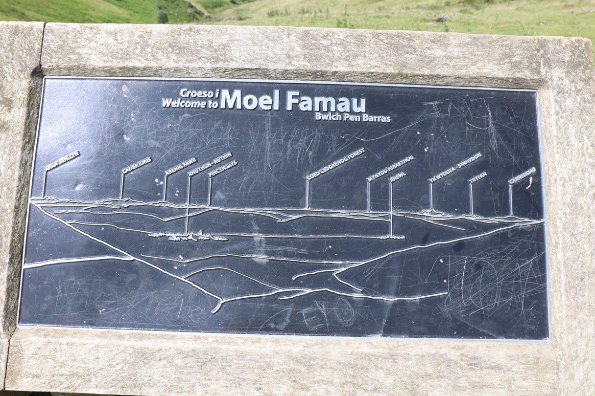 June 28, 2019. 11.5 miles. Iron and Bronze Age hill-forts (Foel Fenlli, Moel Arthur, Penycloddiau), Jubilee Tower on top of Moel Famau.
