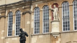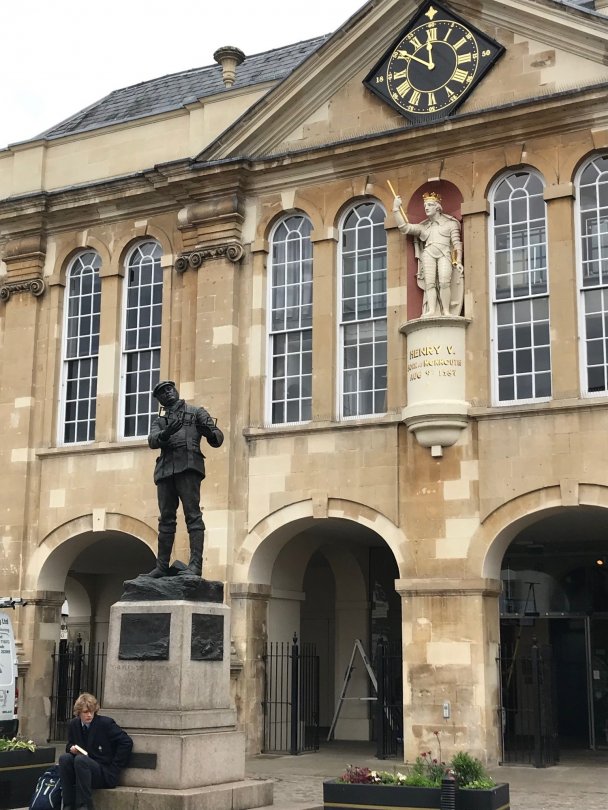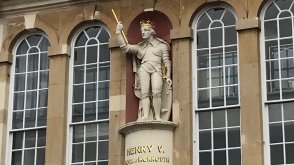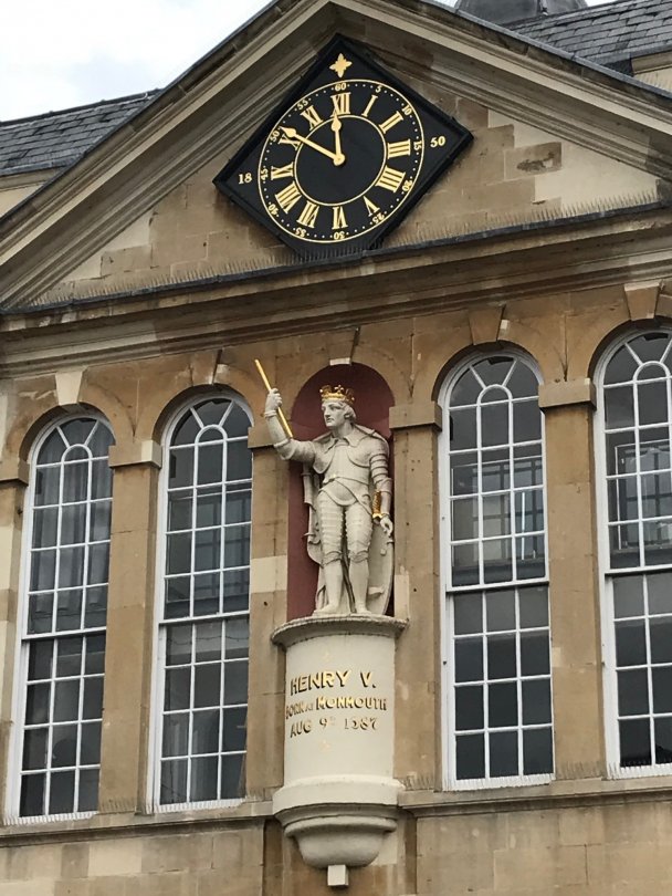 Statue of Henry V (Henry of Monmouth) on Shire Hall in Monmouth.