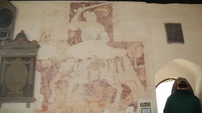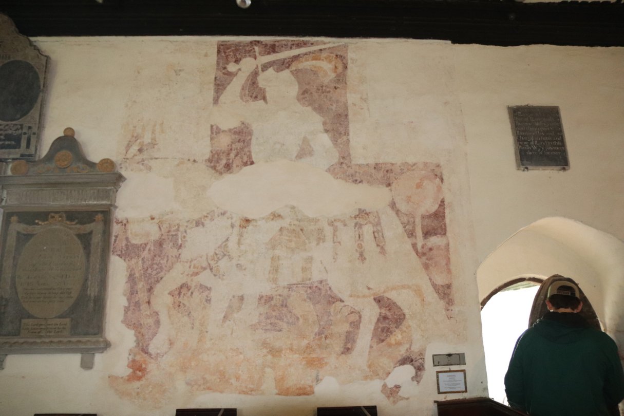 The 15th-century painting of St. George on horseback in the Church of St. Cadoc in Llangattock-Lingoed.
