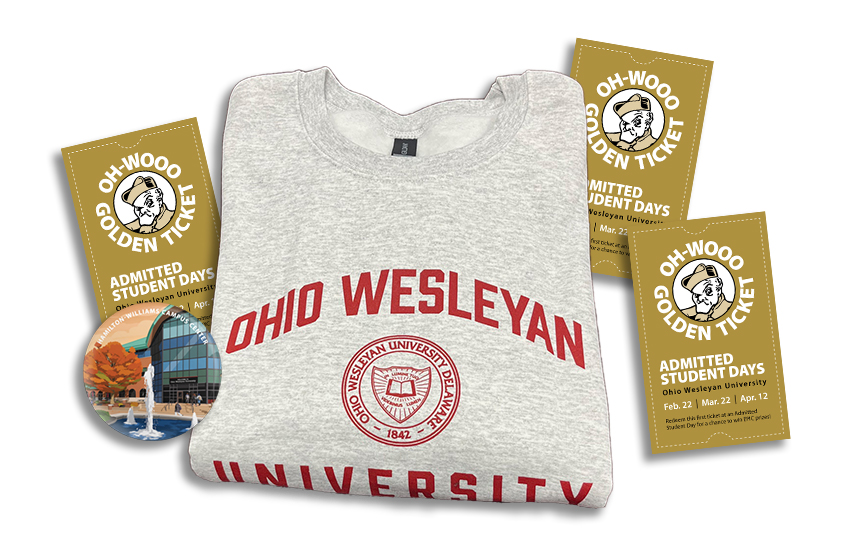 Welcome to Ohio Wesleyan University's event designed EXCLUSIVELY for admitted students! Event highlights include your free OWU sweatshirt, earning Golden Tickets to enter prize giveaways, and the MEET YOUR MATCH challenge! You'll receive more info upon arrival! We can't wait to welcome you to OWU!