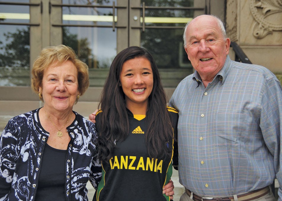 Gordon Smith ’54 and Helen Crider Smith ’56, with Nina Carmichael-Tanaka ’19. Nina spent spring semester in Tanzania, where she visited The School of St. Jude, which is supported by the Smiths.