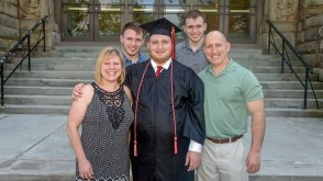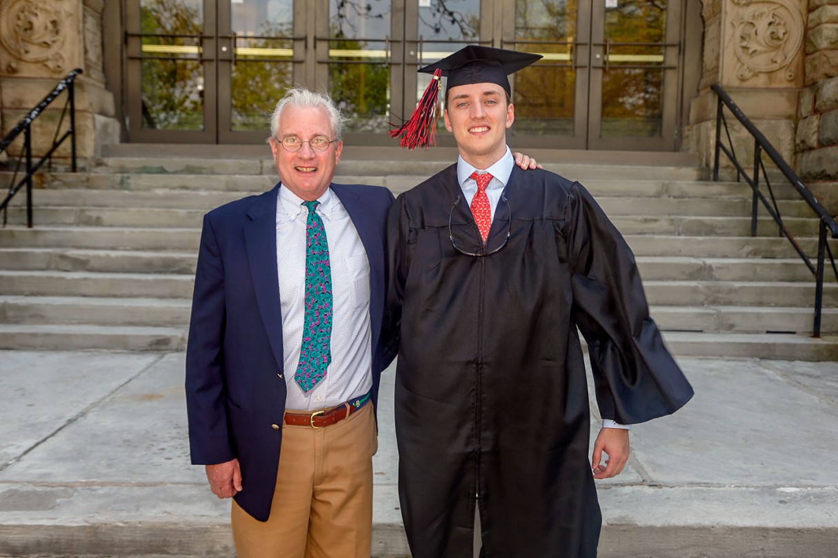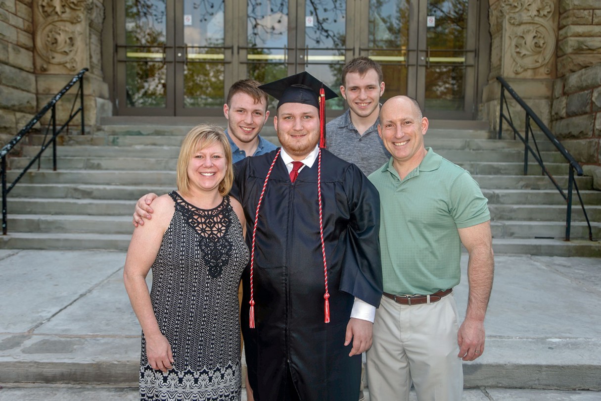 (From left) Father David Beeghly ’80 celebrated the graduation of John/Jeb Beeghly ’18.