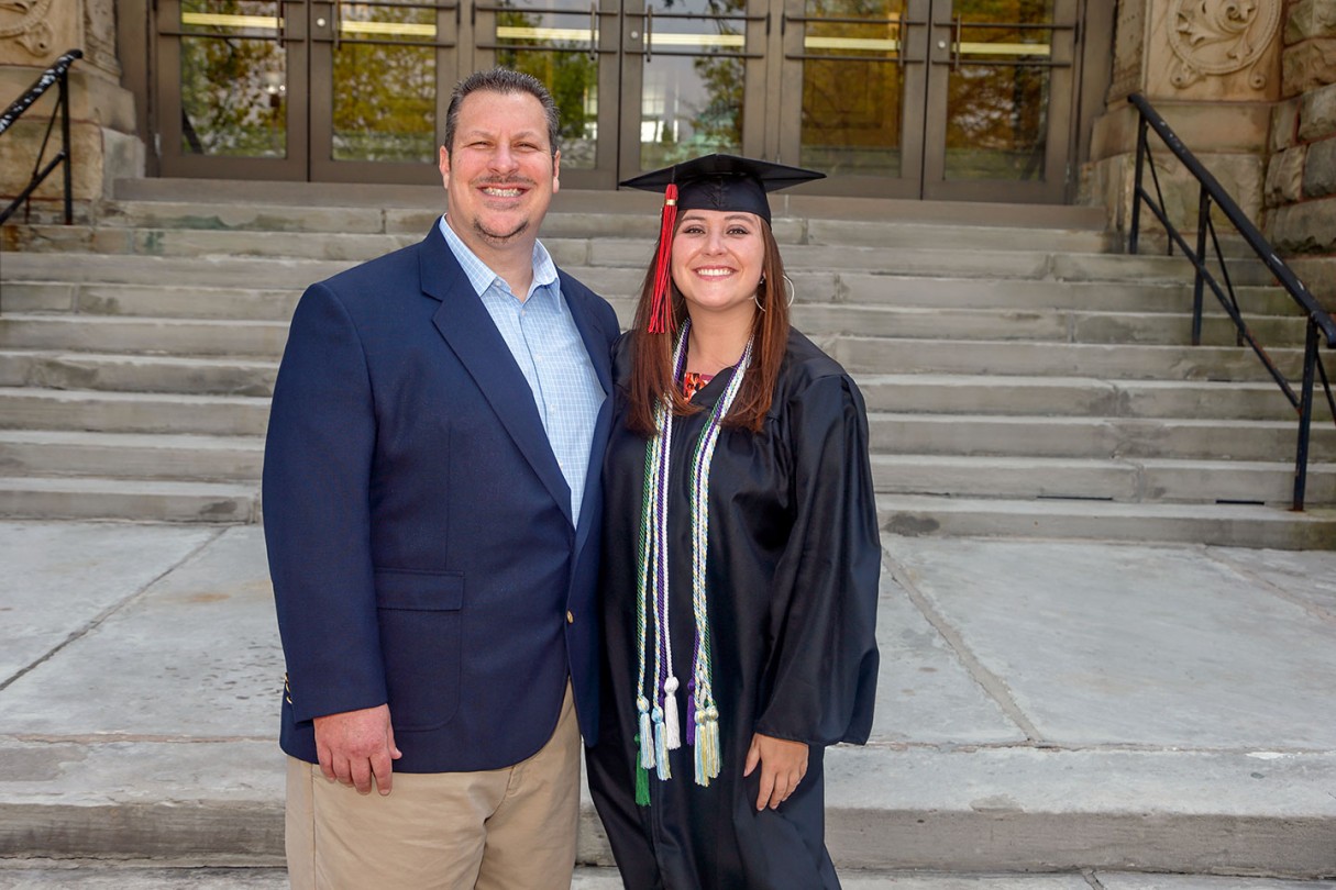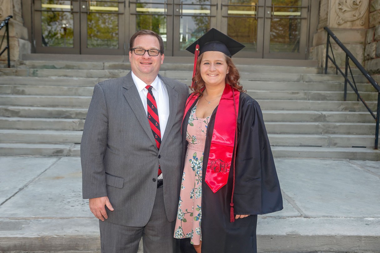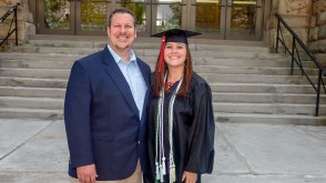 (From left) Father Bill Greeley ’80 celebrated the graduation of Allison Greeley ’18.