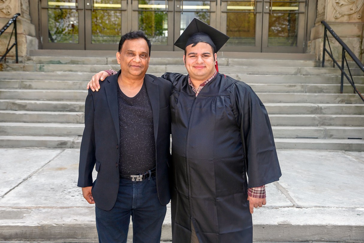 (From left) Father Asim Mughal ’89 celebrated the graduation of Ibtahaj Mughal ’18.
