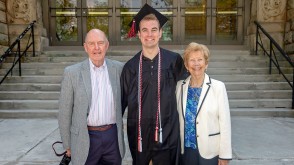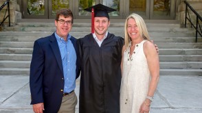(From left) Mother Amy Schillig Glasgow ’92 celebrated the graduation of Connor Glasgow ’18, with Connor’s father Marc Glasgow ’93.