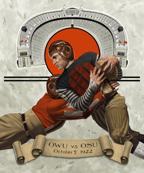 That’s right. The big game. The very first game in the history of the famed horseshoe known as Ohio Stadium. And that feared team from up north—about 20 miles as the crow files—from Ohio Wesleyan University was invading Columbus.
