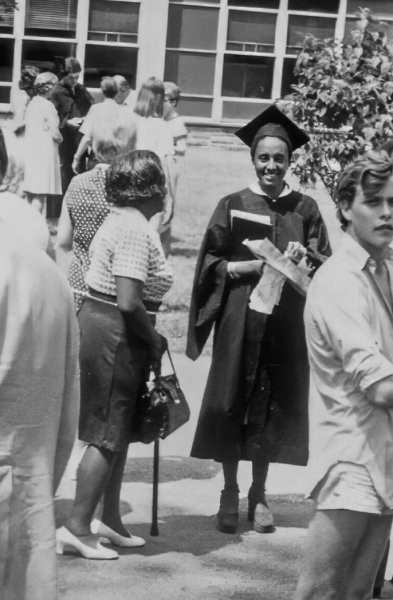 At her 1973 graduation, Shirley Paden celebrates with her mother.