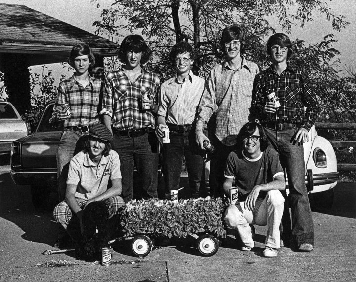 More than 20 alumni helped solve the mystery photo from the Spring 2023 issue. Now, for our fall issue, we have a fall photo from the archives. Can you help us identify these students and what the story is behind the photo? Have they built a mini-float honoring Schlitz? Where are they? And whose VW Beetle is that peeking out?