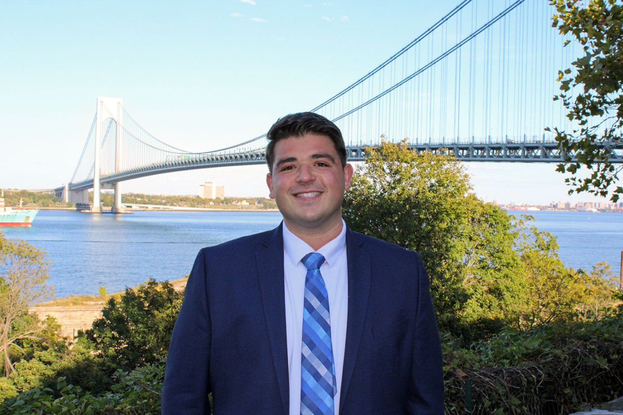 The Admission Department has hired Anthony Rinaldi, seen here near the Verrazzano-Narrows Bridge, as its new associate director of admission for the New York metropolitan area. Working at Wagner College on Staten Island the past four years, Rinaldi built extensive relationships in the region with school counselors.