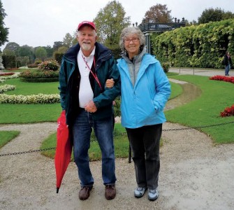 When Richard Gall ’56 first received his red OWU baseball cap in December 2015, he didn’t know that it would connect him with fellow Bishops more than once in the next year. In August, Gall was in Carmel, Calif., at the Pebble Beach Concours d’Elegance automobile show. A woman approached him to say she went to OWU, identifying herself as Leigh Stewart ’75. In October 2016, Gall was at the Schonbrunn Palace in Vienna when a woman approached him to say she had also attended OWU. This time it was Linda Collins ’62 of New York (right with Gall). “We were both on a Danube River cruise on the same ship, and she noticed my baseball cap while we toured the palace,” Gall recalls. “From California to Austria, the red OWU baseball cap is a sure sign of alumni recognition!”