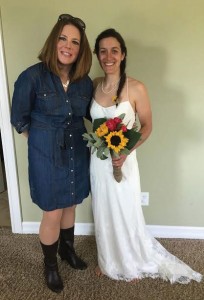 Melanie Hill ’05 married Jesse Hooper on Oct. 15 in a small family wedding at the Bellville, Ohio home of her brother Jim and sister-in-law Megan Maurer Hill ’02 (on left). The newlyweds live in Alaska.