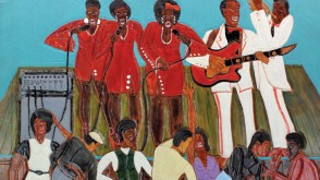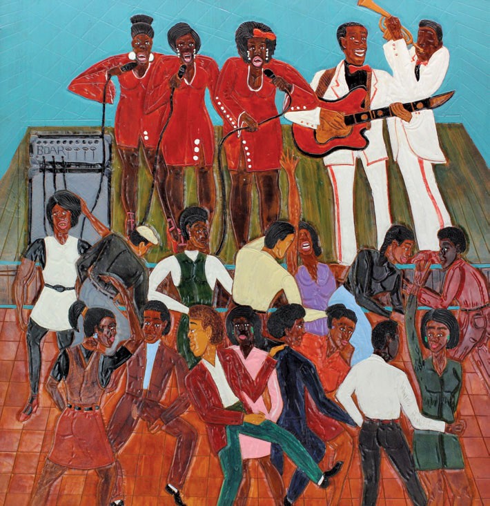 by Winfred Rembert, 2009, dye on carved and tooled leather