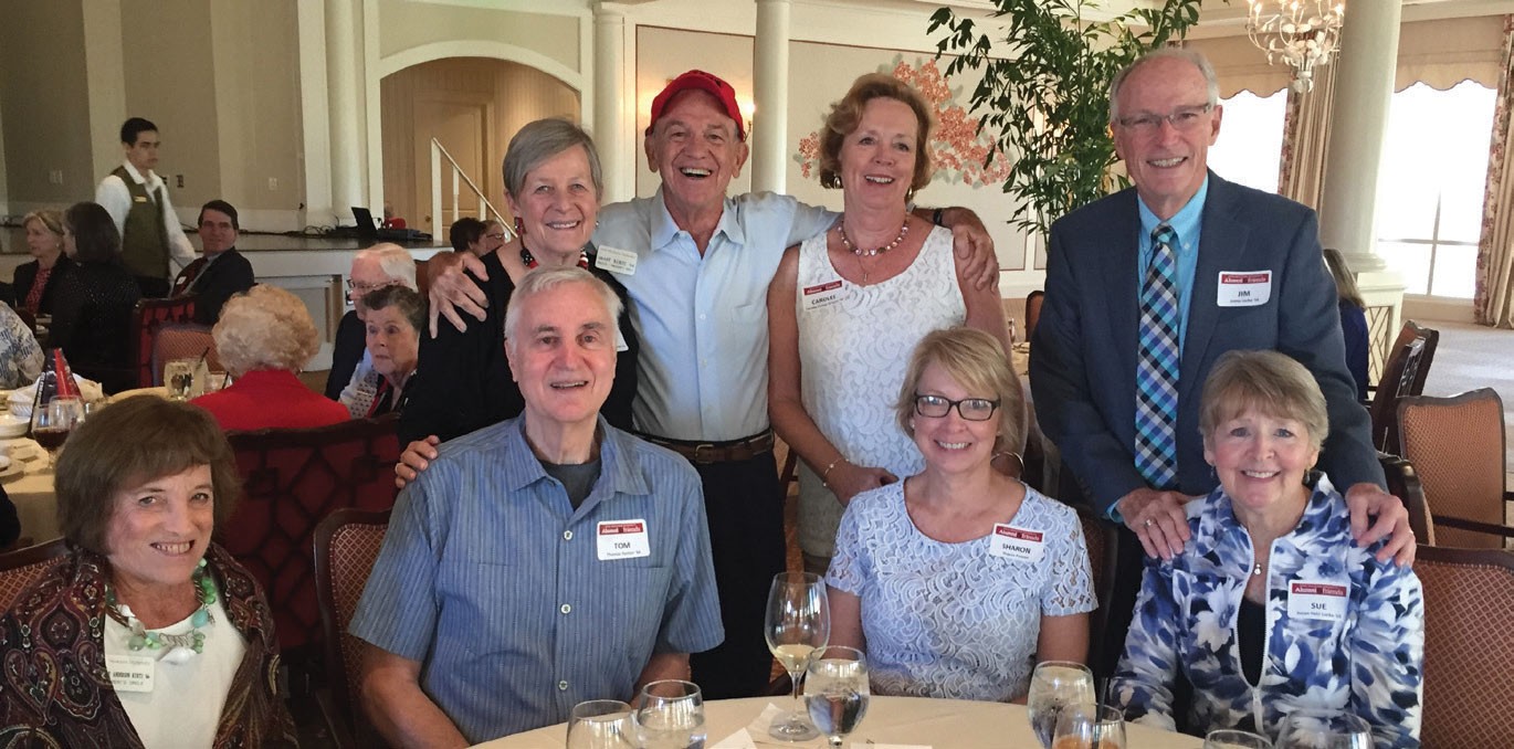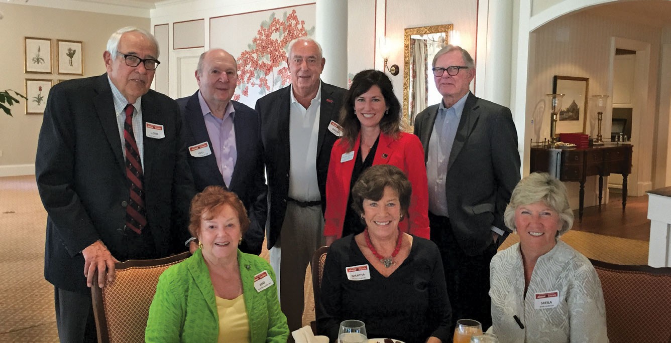 Red & Black luncheon attendees at Royal Poinciana Golf Club in February: (seated, from left) Christine Anderson Kurtz ’66, Tom Fenton ’64, Sharon Fenton, Sue Petri Locke ’65; (back row) Kathe Law Rhinesmith ’64, Grant Kurtz ’64, Carolee O’Hara ’70, and Jim Locke ’64.