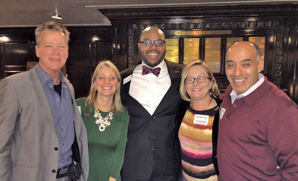 Washington, D.C. event attendees at the National Press Club (from left): Woodrow English, Anne Derhammer English ’82, OWU associate director of admission & coordinator of multicultural recruitment Reggie Onyido, Catherine Hope P’20, and Dan Lesmez P’20.