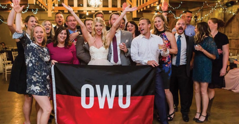 Erin Hanahan ’10 married David Gatz ’10 on Sept. 8 in Cleveland. The bride and groom were members of the OWU swimming and diving team. Pictured from left: (back row) Michael Gatz ’12, Kevin Fahey ’10, Syed Usman Javaid ’10, Jaime Javier ’10, Colin Hawes ’20, Kristin Kovach White ’10, Andrew White ’10, Casey Teeters ’08, Jane Hawes (wife of Richard Hawes), Richard Hawes (OWU swimming coach), John Gatz (OWU professor and father of the groom); (front row) Bhavna Mural ’12, Anna Spencer ’12, Kelsie Patton Fahey ’10, the groom and bride, Alex Martin ’09, Katie Donnan ’08, Megan Downing Teeters ’09, and Whitney Marker ’07.