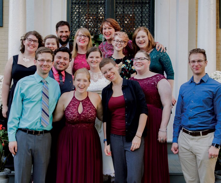 Lucy Warren ’10 married Gavin Bennett ’10 on Sept. 17, 2016, in Washington, D.C. Pictured from left (front row): Carrie Williams Schlegel ’05, the groom and bride, Katharine Mannix ’10, Chris Ehlinger ’10, John Schlegel ’05; (back row) Jake Bennett, Jonathan Hood ’10, Timmy White, Eliot Hubbell Jeffers ’11, Haleigh Rohr Hauser ’10, Sam Salk ’08, Andrew Newhouse ’10, Jeff Scholtz ’08, Patrick Williams ’10, and Alex Giles ’11. Not pictured: Kelly Marchesi ’10, Chris Sluyter ’11, Elizabeth Lambert ’10, Jessica Copeland Wall ’10, Tyler Wall ’11, and Warren McDaniel ’11.