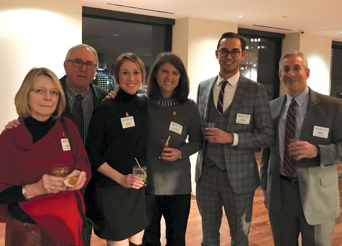 Boston (from left): Nancy Seiwert Williams ’72, Tom Williams ’72, Sarah Bruno ’10, Hillary Panas Pember ’85, Rich Karban ’14, and Andy Morrison ’85.