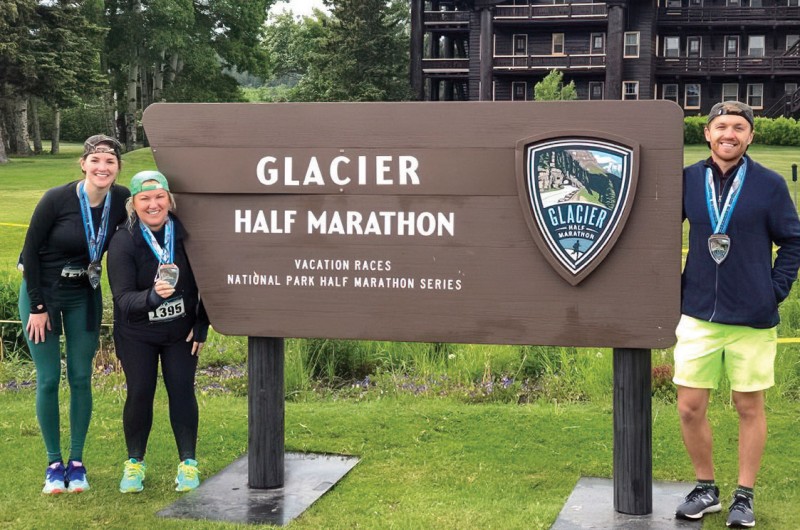 Jenna Narwicz ’08, Ruthie Goodell ’09, and Chaz Narwicz ’10 completed the Glacier Half Marathon in Montana last June.