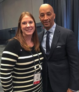 Casey Dobbins Hinkle ’04 met fellow alumnus Byron Pitts ’82 in November at the 2018 Housing Conference in Columbus, where the ABC newsman was the keynote speaker. Hinkle says Pitts was an incredible speaker who made her laugh, cry, and leave inspired.