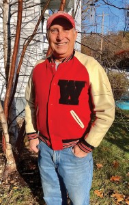 Steve Peck ’74 decided to paint a moldy closet and found this letter jacket that he earned as a member of the diving team from 1971 to 1974. Although it was somewhat snug, he reports that he could still snap it up! Steve and his wife, Candice Lengacher Peck ’74, are now living in Vermont. Go Bishops!