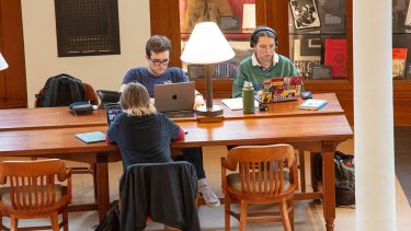 The restored Reading Room has quickly become a favorite study spot for a new generation of OWU students. A new cork floor improves the Reading Room’s acoustics.