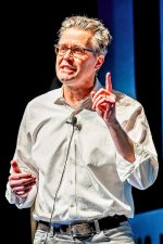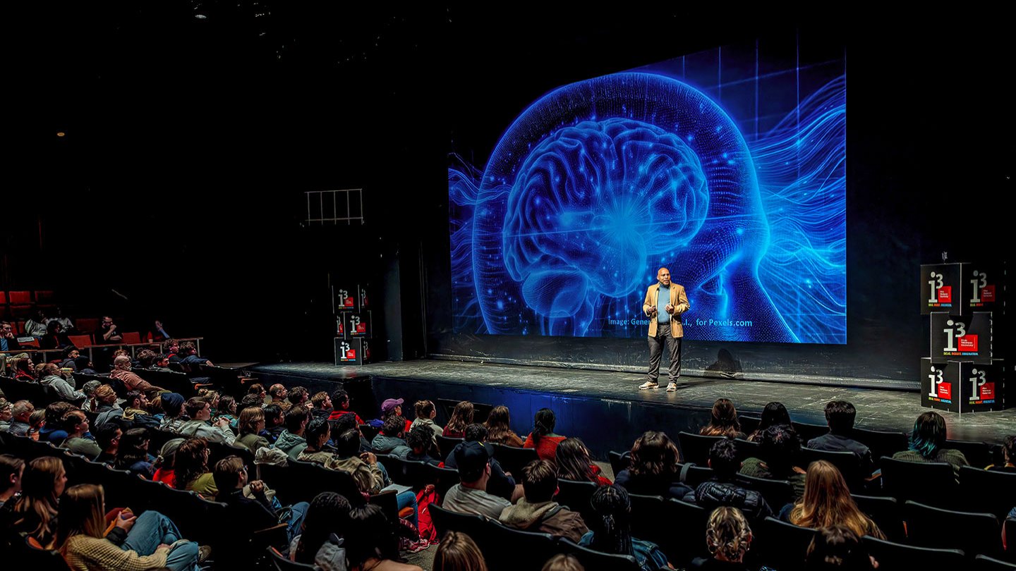 Assistant Professor of Theatre Brian Granger presents "A Great Film Can Save Your Brain" at OWU's 2025 i³ Lectures in Chappelear Drama Center. (Photo by James DeCamp)